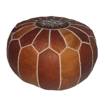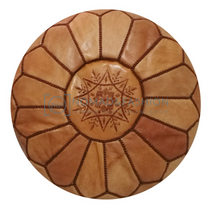 Premium handmade leather Moroccan pouf ottoman round poof Color Light Almond Stitched Brown