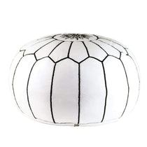 Moroccan handmade leather pouf White stitched in black