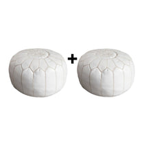Set Of 2 Geniune Moroccan handmade leather pouf White