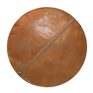 Premium handmade leather Moroccan pouf ottoman round poof Color Light Almond Stitched Brown