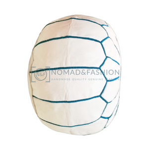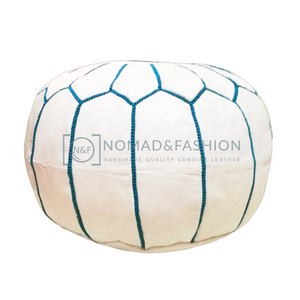 Premium handmade leather Moroccan pouf ottoman round poof White Blue Sky
